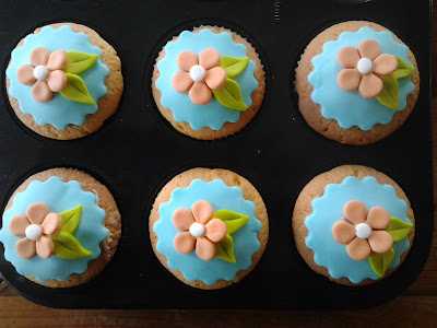 Ik vond de nieuwe kleurtjes rolfondant die wij in de winkel hebben (Pipoos) zo mooi, ik moest er gewoon een paar cakejes mee versieren, ook al zal het nooit mijn hobby worden.