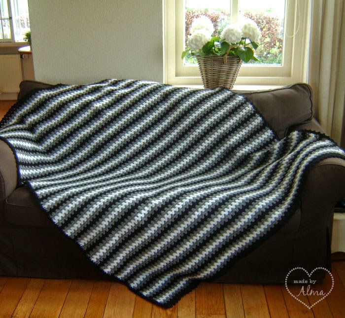 Het is een mooie grote, warme deken geworden en dochterlief is er blij mee, hij past goed in haar nieuwe huisje!